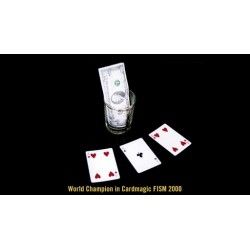 Efecto: El mago muestra dos cartas de color rojo y un As negro. Coloca una carta roja bajo un vaso y mete un billete como apuesta, mueve las otras dos cartas sobre el tapete y pregunta al espectador: Donde está el As?... por supuest falla por dos veces, ya que el As es la carta que está bajo el vaso.