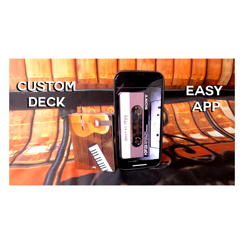 Efecto: El mago muestra una baraja de cartas con diferentes años y canciones distintas y le pide a un espectador que elija el año y una canción que conozca. El mago coge una cinta de "cassette" invisible de debajo de su móvil y lo vuelve a dejar. Entonces le deja el móvil en manos del espectador, chasquea los dedos....y comienza a sonar la canción elegida por el espectador!!
