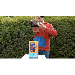 Efecto: El mago muestra un máquina expendedora portátil completamente vacia por dentro. Entonces enseña varias tarjetas con diferentes productos para que elija un espectador (uno, dos o tres dependiendo del mago) y todos esos artículos aparecen mágicamente dentro de la caja!!